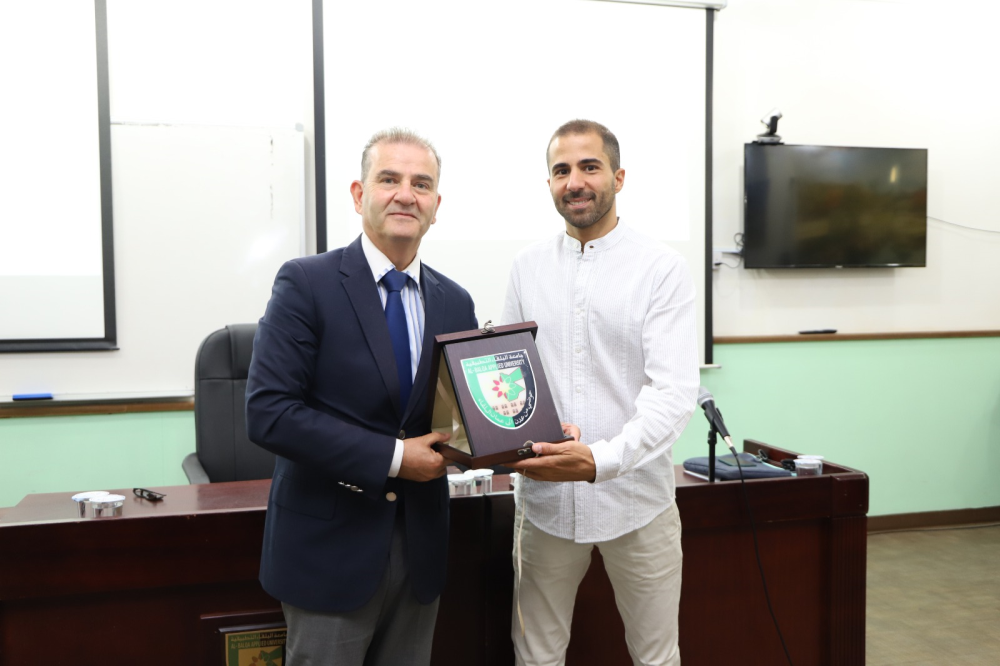 ورحب الدكتور الكلوب بالمحاضر والخبير المهندس طارق مشاقبة معبرا عن شكر وتقدير الجامعة لتفضله بإعطاء هذا المحاضرة في موضوع humans design)) لأهمية هذا النوع من المحاضرات في نشر التوعية والتثقيف وإطلاع المجتمع وتعريفه في العلوم الحديثة، مؤكدا على حرص الجامعة على تعميم وعقد هذا المحاضرات النوعية في كافة كليات الجامعة وفي المجتمعات المحلية المنتشرة في انحاء المملكة .