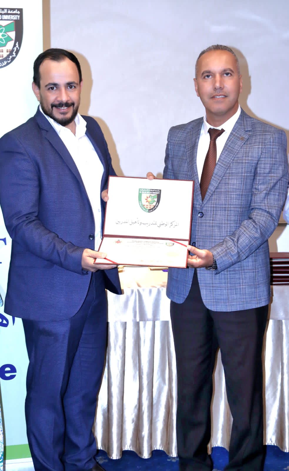 مندوباً عن عطوفة الاستاذ الدكتور احمد فخري العجلوني رئيس جامعة البلقاء التطبيقية رعى الاستاذ الدكتور زيد سليمان العدوان مدير المركز الوطني للتدريب وتأهيل المدربين اختتام دورة تدريب المدربين في الشركات المستوى الاداري .