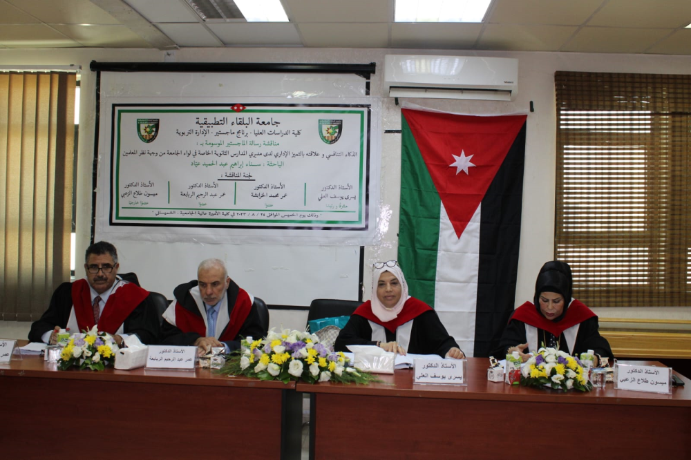 تم في مساء يوم الخميس الموافق 23/8/2023 ، مناقشة رسالة ماجستير للطالبة سناء ابراهيم عياد تخصص الادارة التربوية قسم العلوم التربوية والموسومة بـ :