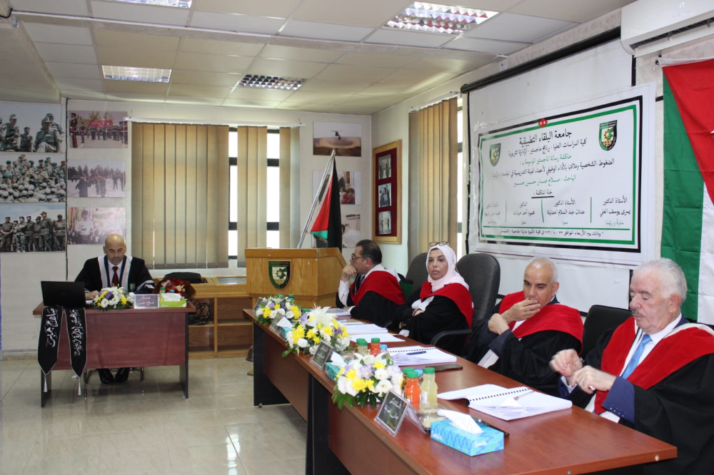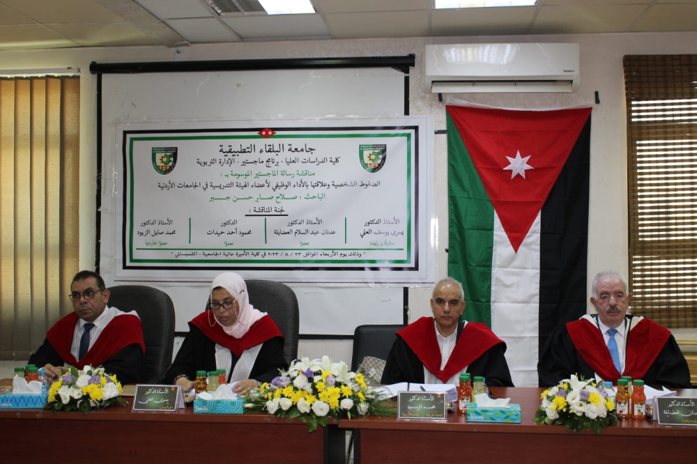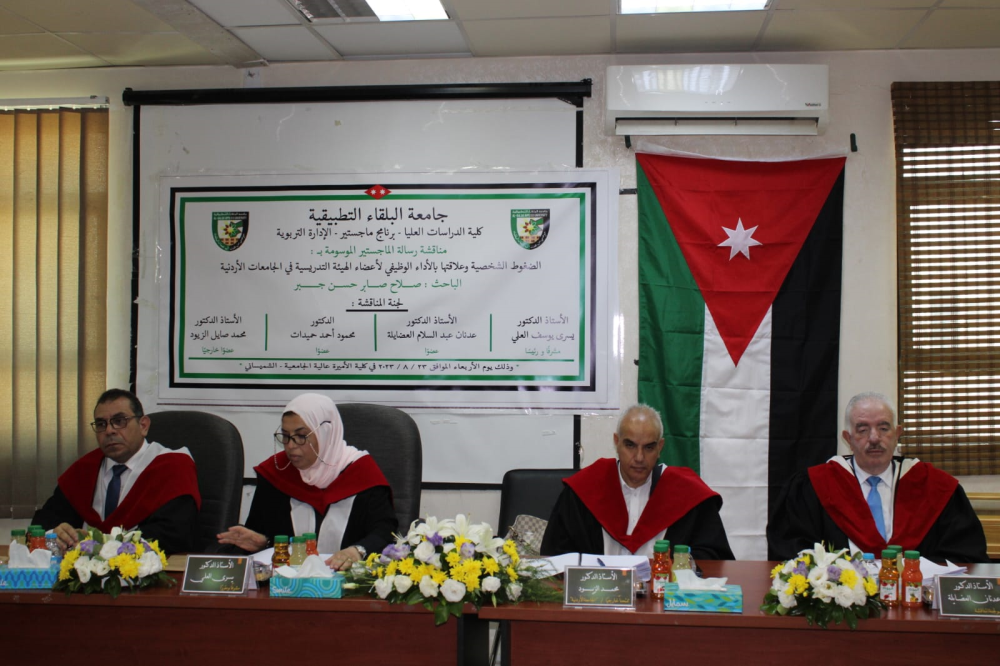مناقشة رسالة ماجستير للطالب صلاح صابر جبر في كلية الأميرة عالية الجامعية