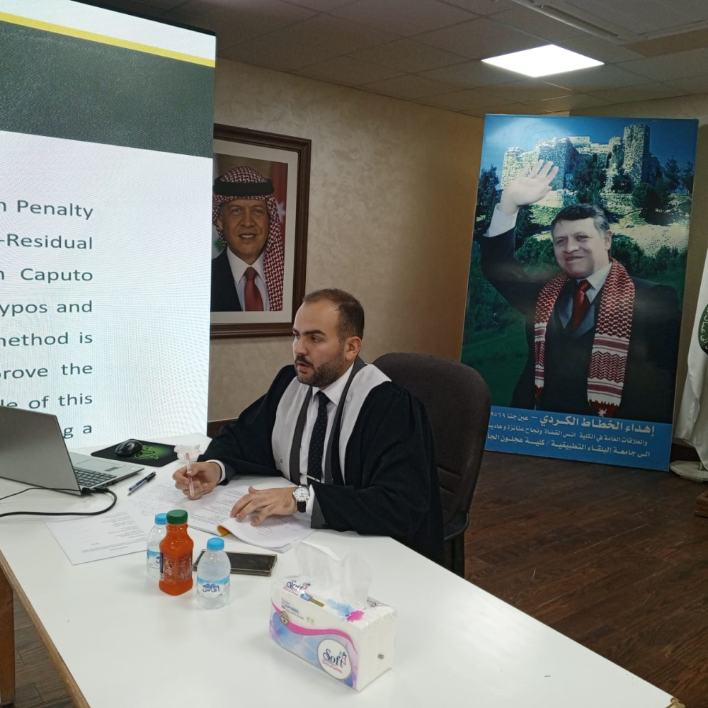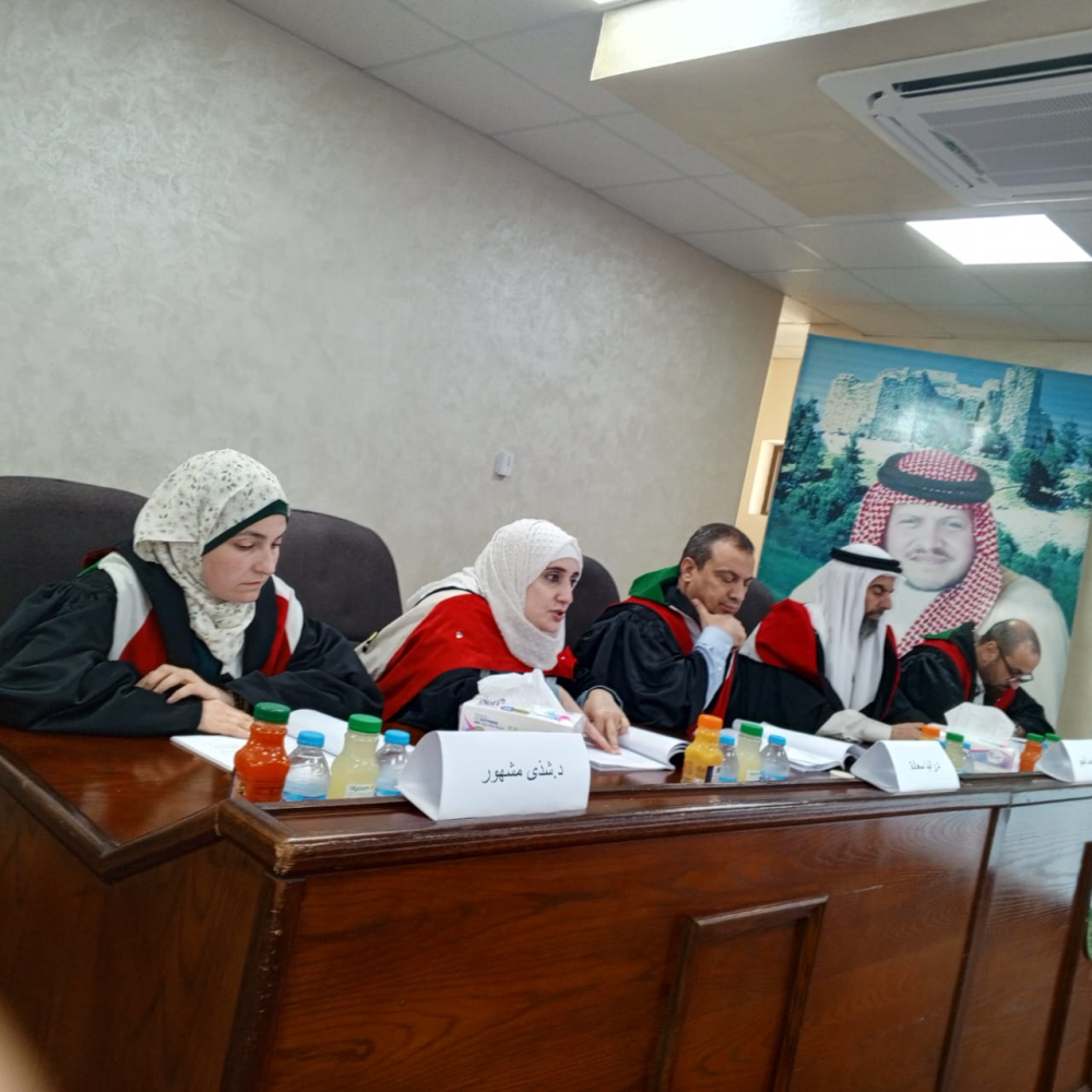 وتشكلت لجنة المناقشة برئاسة وأشراف الدكتور أسعد فريحات رئيس قسم العلوم التطبيقية في كلية عجلون الجامعية والدكتور محمد عبد الهادي العياصرة مشرفا مشاركا /كلية عجلون الجامعيةوالدكتورة شذى مشهور حسن مناقشاً داخليا/كلية عجلون الجامعية/جامعة البلقاء التطبيقية والأستاذ الدكتور احمد محمد العجو مناقشا داخليا/كلية العلوم جامعة البلقاء التطبيقية/المركز