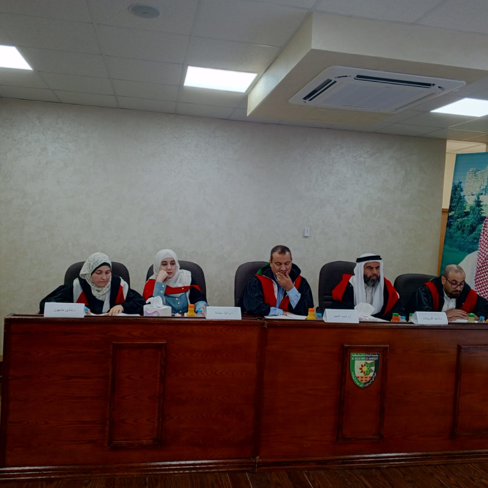 تم اليوم مناقشة رسالة ماجستير للطالب سيف الدين محمد الشويات في كلية عجلون الجامعية /جامعة البلقاء التطبيقية بعنوان