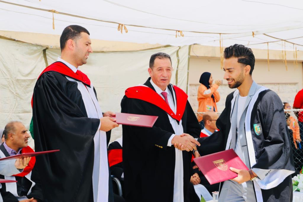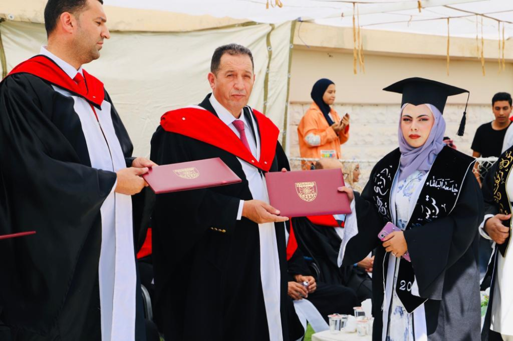 ووسط اجواء يكتنفها الفرح  سلم الاستاذ الدكتور عميد الكلية الشهادات على الخرجين  ، وتمنى لهم المزيد من التقدم والنجاح.
