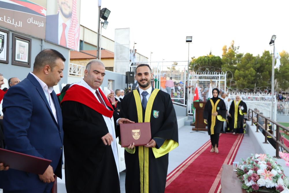 مندوباً عن رئيس جامعة البلقاء التطبيقية الأستاذ الدكتور أحمد فخري العجلوني رعى عميد كلية الزرقاء الجامعية الأستاذ الدكتور محمد غيث حفل تخريج الفوج الثالث والعشرين من طلبة الكلية بحضور عميد شؤون الطلبة الدكتور خالد الزعبي والمسجل العام الدكتور زكريا العطيات وأعضاء الهيئة التدريسية في الكلية وجمع غفير من ذوي الطلبة الخريجين وذلك على ملعب الجامعة الرئيسي في السلط.