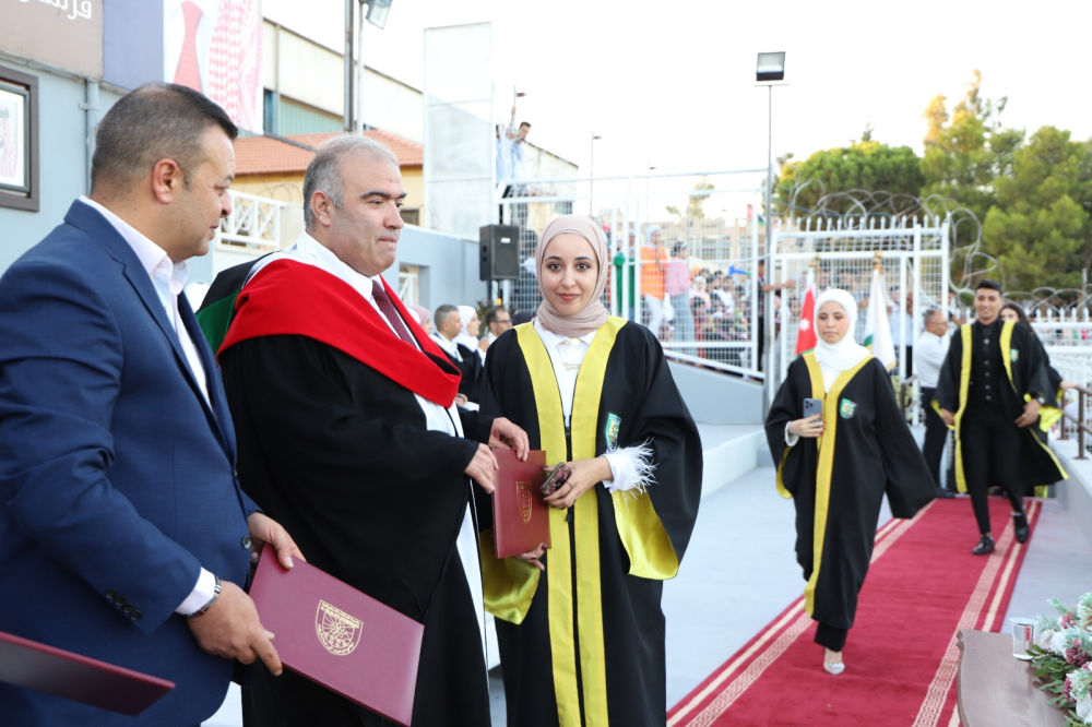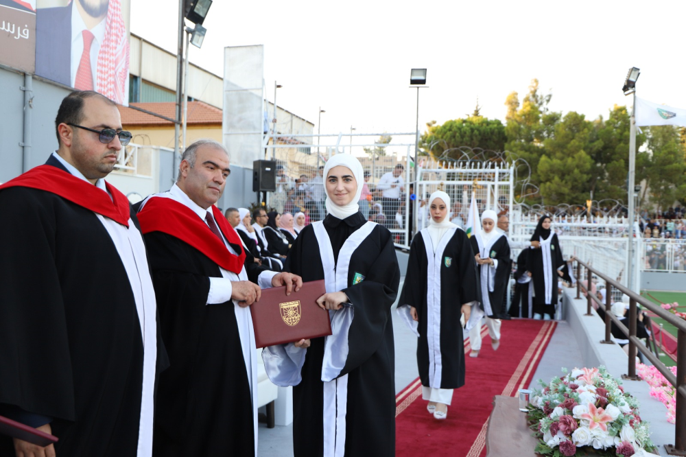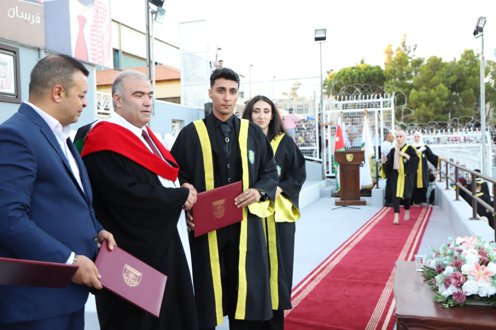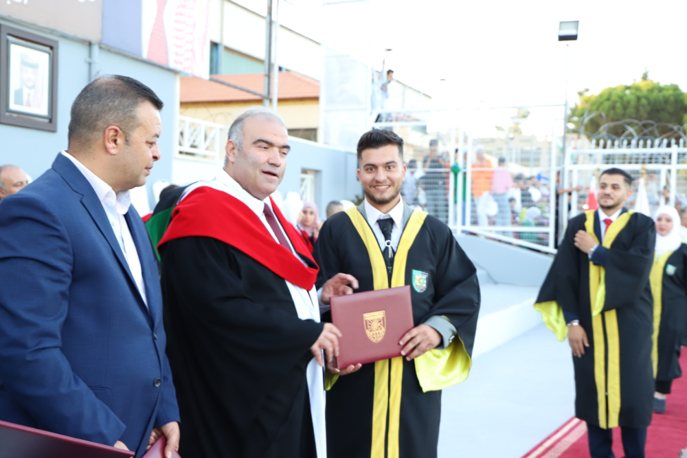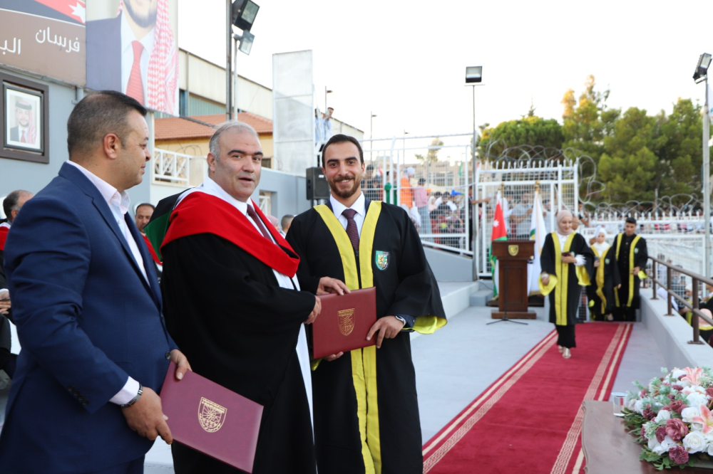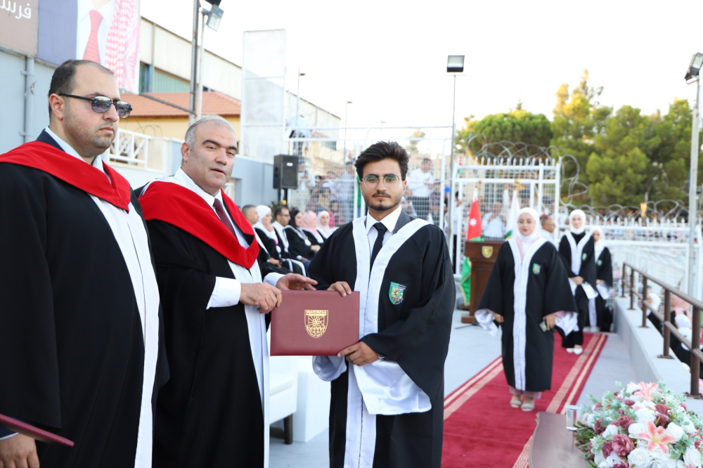 وقدم عميد الكلية غيث التهاني والتبريك بإسم رئيس الجامعة وأسرتها إلى الطلبة الخريجين وذويهم معبراً عن اعتزاز الجامعة بجميع طلبتها ليكونوا مرآه يعكسون الصورة المتميزة لها متمنيين لهم دوام التوفيق والنجاح في حياتهم العلمية والعملية وأن يكونوا على الوعد والعهد مخلصين لوطنهم وللقيادة الهاشمية مؤديين رسالتها في كافة المجالات.