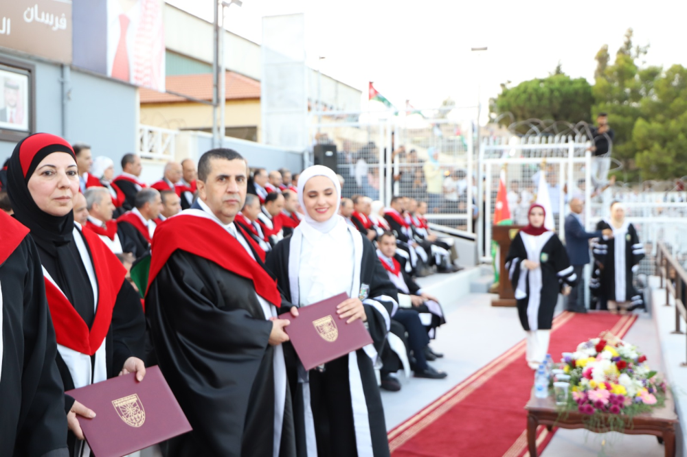 الدكتور رئيس الجامعة هنأ الطلبة الخريجين وذويهم وخاطبهم ان الجامعة تعتز وتفتخر وتباهي بكم فأنتم الدرُّ الثمين الذي تنثره الجامعة كل عام في سماء هذا الوطن وانتم جيل المستقبل ومحط اهتمام ورعاية صاحب الجلالة الملك عبدالله الثاني ابن الحسين وولي عهده الأمين ، فقد غدت الجامعة اليوم اكبر الجامعات الوطنية في هذا الوطن الأغلى ، وأصبحت مقصدا لكل متعطش للعلم والمعرفة والكفاءة والمهارة.