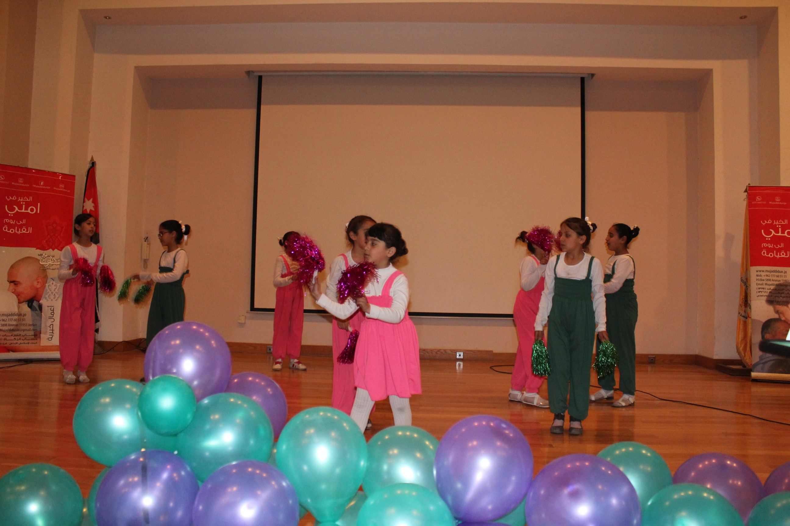 وفي ختام اليوم اقيم احتفال في مسرح الاميرة جنة اشتمل العديد من الفقرات الرائعه واشتمل الحفل على كلمة القاها الدكتور ايمن الرواشده مساعد العميد للشؤون الطلابية ،وتخلل الحفل فقره عن الاراده قدمها الاستاذ اسامه المصري وورشه عمل للايتام قدمها الدكتور بلال ايوب .