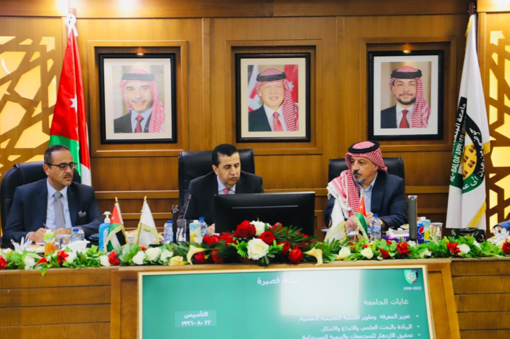 وبين الدكتور العجلوني ان ابرز التحديات التي تواجه الجامعة هي التحديات المالية المتمثلة بديون الجامعة على الجهات المبتعثة للطلبة، والكلف المرتفعة للتعليم التقني ومحدودية المساحة في حرم الجامعة في مدينة السلط والتي تحد من امكانية انشاء مباني جديدة وقاعات تدريسية وتوفير مختبرات ، مبينا ان الجامعة وضعت خطة وتصور واضح لتوسعة ولتطوير جميع كلياتها وتحسين بناها التحتية والتكنولوجية لتواكب روح العصر والارتقاء بالعملية التعليمية وفق أحدث المعايير، مشيرا في هذا الصدد الى العمل على استملاك اراضي على الواجهة الغربية بمساحة 46 دونما لتتمكن الجامعة من الوصول واجهة شارع الستين ليتم انشاء مباني للكليات ومرافق حيوية وصالة متعددة الاغراض تخدم ايضا المجتمع المحلي وتساهم في تطوير وتحسين المناطق المحيطة وتحقق التنمية فيها .