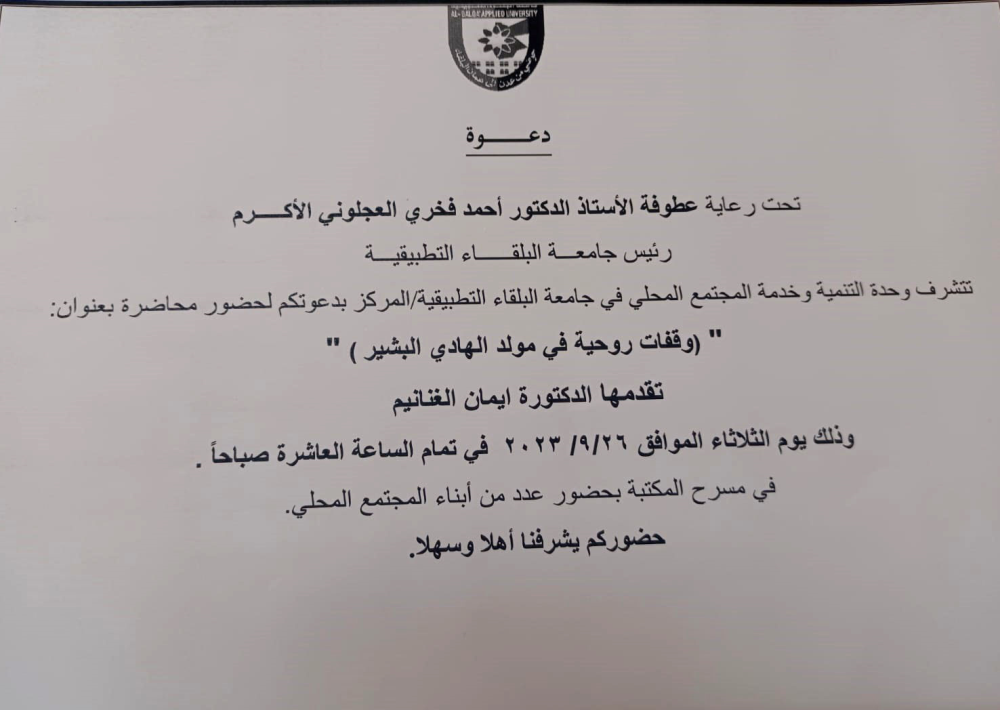 جامعة البلقاء التطبيقية تنظم ندوة تدريبية بعنوان المهارات الحياتية بواسطة