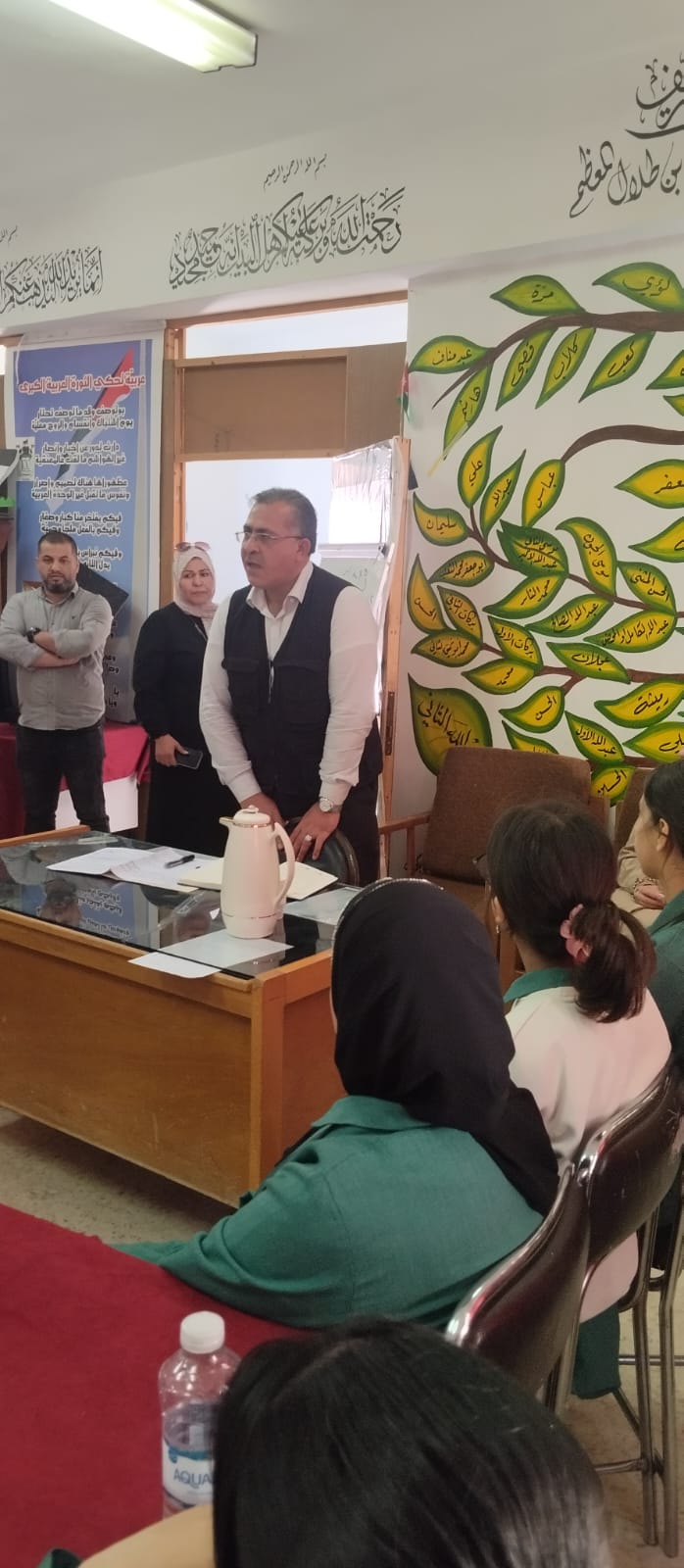 والتي أشار فيها الدكتور الدباس إلى أهمية العملية الإنتخابة وأنها نموذج مصغر شبيه بإنتخابات مجلس النواب الأردني مؤكداً فيها على قواعد وأسس العملية الإنتخابية الطلابية مما يساعد إلى حد كبير في زيادة وعي الطلاب في معرفة حقوقهم وواجباتهم وخلق مساحة من الإبداع والإبتكار من خلال إنتخاب المرشحين في المدرسة .