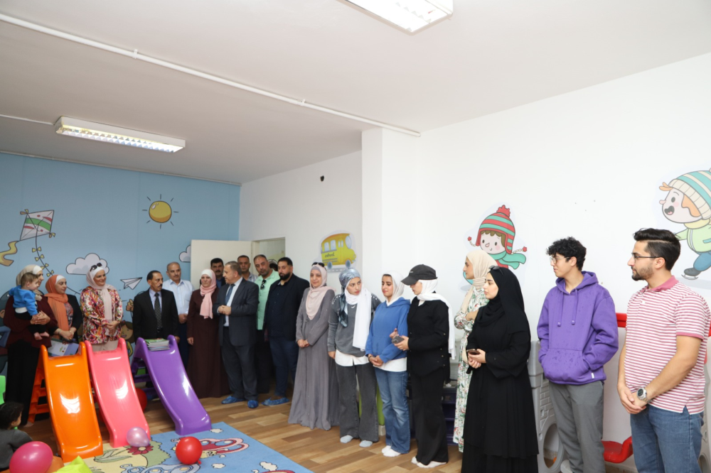 استنادا الى رؤية ورسالة جامعة البلقاء التطبيقيه في تحقيق اهداف التنمية المستدامة في مجال رعاية الطفل وبتوجيهات من عطوفة رئيس جامعة البلقاء التطبيقية وبمناسبة اليوم العالمي للطفل ويوم التضامن مع الشعب الفلسطيني الشقيق نظمت وحده التنمية وخدمة المجتمع المحلي زيارة الى حضانة الجامعة بحضور نائب الرئيس للشؤون الكليات الاستاذ الدكتور زكريا قضاة ومدير وحدة التنمية وخدمة المجتمع المحلي الاستاذ الدكتور غالب عربيات ومساعد مدير الخدمات عبدالرحمن عطيات ورئيس قسم الحضانة السيدة غرام حياصات حيث تضمنت الزيارة توزيع القصص والهدايا والالعاب والحلوى على الأطفال.