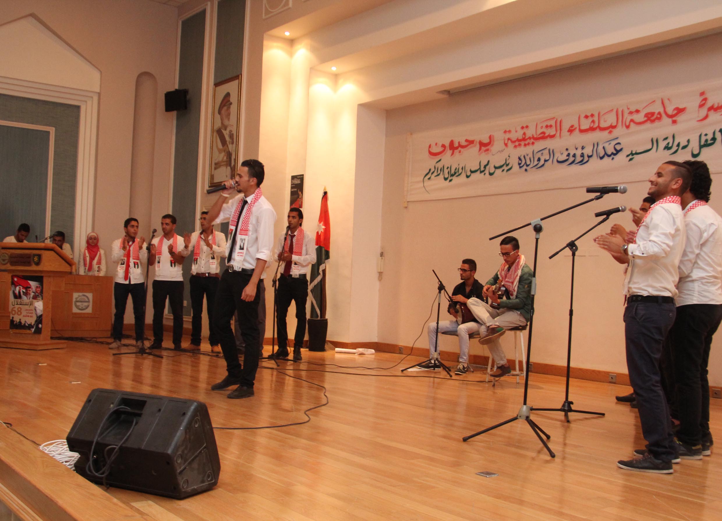 وقد إشتمل الحفل على العديد من الفقرات حيث قدم كورال كلية الهندسة التكنولوجية العديد من الأغاني الوطنية وقدم العديد من الطلبة والطالبات قصائد شعرية تغنوا فيها بالوطن , في حين شاركت فرقة أمانه عمان الكبرى بالإحتفال مقدمةً العديد من فقرات الدبكة و الغناء الشعبي , و في نهاية الحفل قدم الدكتور نبيل الشواقفة درع الجامعة إلى دولة راعي الحفل شاكراً له رعايته .