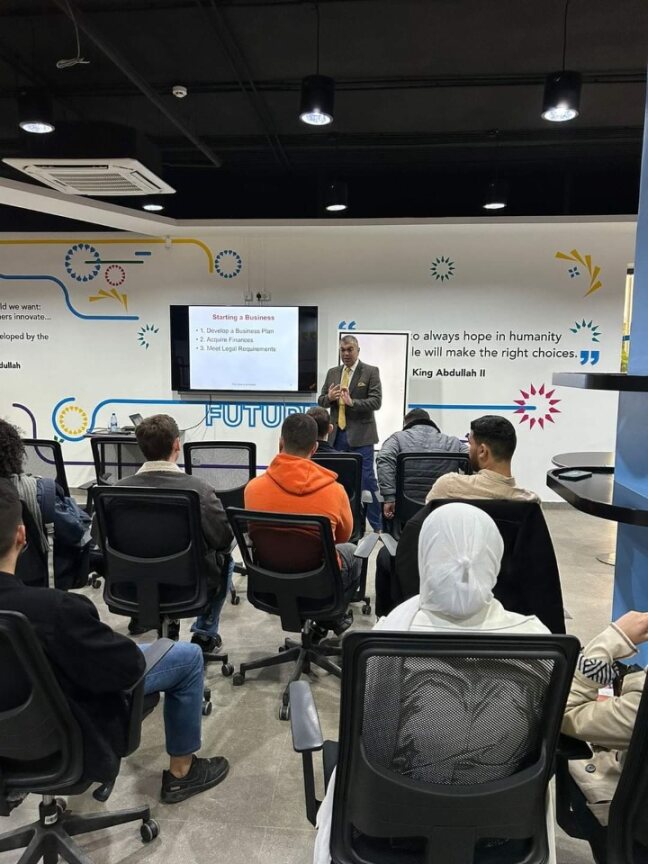 انسجاما مع رؤية مركزا لابتكار والإبداع وريادة الاعمال في جامعة البلقاء التطبيقية في تنميه وتعزيز مهارات الطلبه في الجامعة وضمن فعاليات اسبوع الريادة العالمي 2023 والذي انعقد في حاضنة زنك بالتعاون مع مركز الابتكار والإبداع وريادة الاعمال قدم الاستاذ الدكتور غازي الوشاح ورشه عمل بعنوان “ ريادة الاعمال في مجال التسويق"
