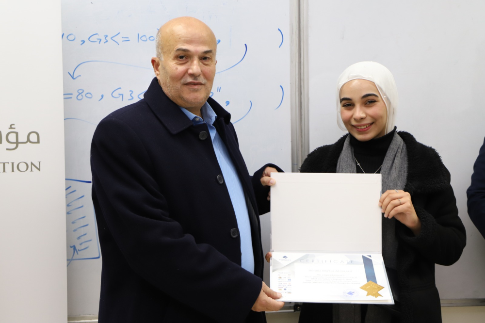 في ختام الدورة سلم الاستاذ الدكتور عمر الزعبي الشهادات على المشاركين وعددهم (17 ) طالبا وطالبة ومن كافة تخصصات الجامعة .
