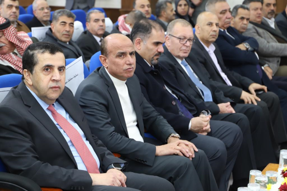 بحضور محافظ عجلون الدكتور قبلان الشريف ونائب رئيس الجامعة للشؤون الادارية الأستاذ الدكتور خليل الحياري ونواب عجلون النائب صفاء المومني والنائب بلال المومني ورئيس لجنة اللامركزية السيد عمر المومني ومدراء الدوائر ووجهاء وشيوخ في محافظة عجلون وعدد من أعضاء الهيئتين الأكاديمية والأدارية في قاعة الشهيد محمد العزام.
