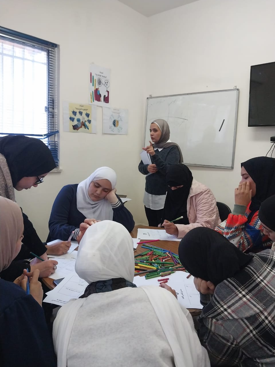 حيث أدارت المرشدة التربوية الورشة من عدة محاور منها مفهوم استكشاف الذات ودور كل من الأهل في التنشئة ، وثقافة المجتمع والمؤسسات التعليمية ووسائل التواصل الاجتماعي في تكوين مفهومنا وصورتنا عن ذاتنا