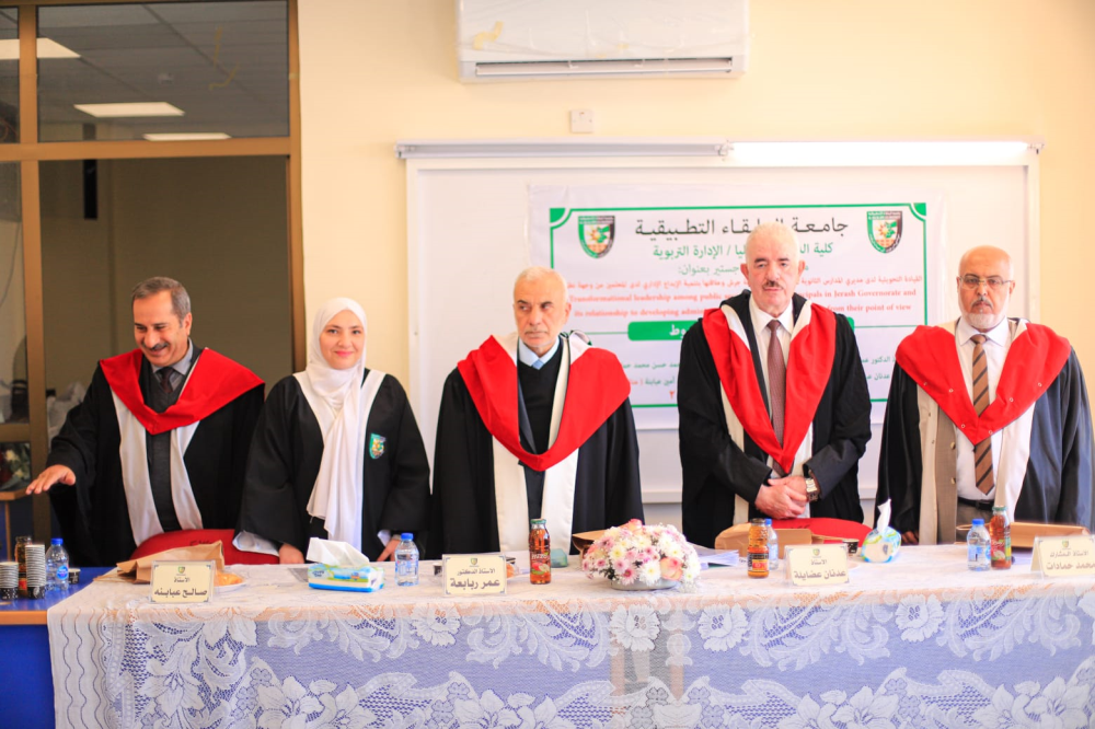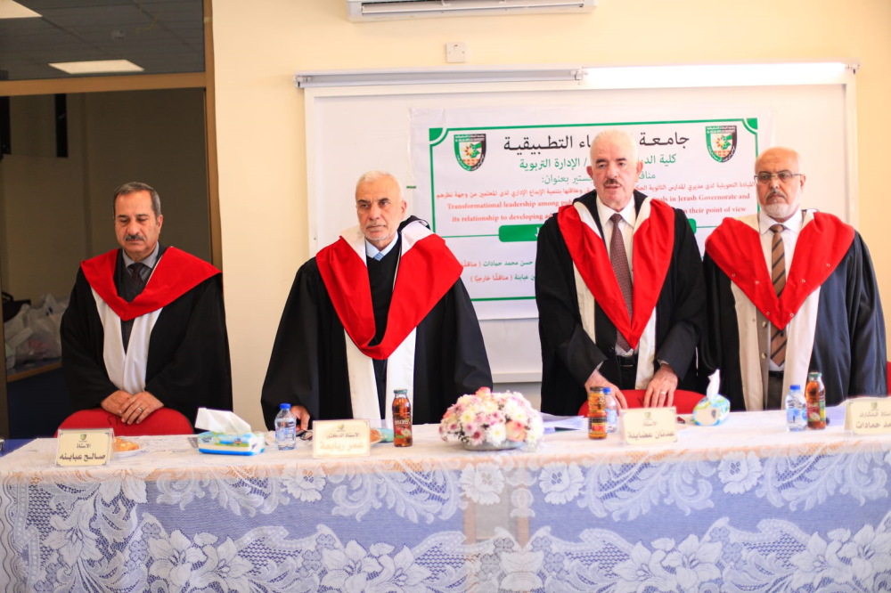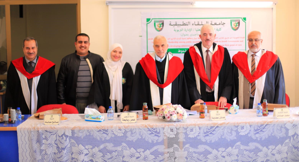 تم مناقشة رسالة ماجستير للطالبة ياسمين شموط في كلية عجلون الجامعية /جامعة البلقاء التطبيقية بعنوان (القيادة التحويلية لدى مدارس الثانوية الحكومية في محافظة جرش وعلاقتها بتنمية الإبداع الإداري لدى المعلمين من وجهة نظرهم )
