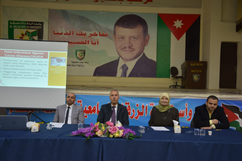 دعما للجهود الوطنية والعالميه  للوقاية من الأمراض السارية والمعدية عامة ومرض نقص المناعة المكتسبة خاصة نظمت كلية الزرقاء الجامعية/ قسم العلوم الطبية المساندة يوم علمي بحضور الأستاذ الدكتور عميد الكلية زيد سليمان العدوان وعدد من أعضاء الهيئة التدريسية والادارية وطلبة الكلية.
