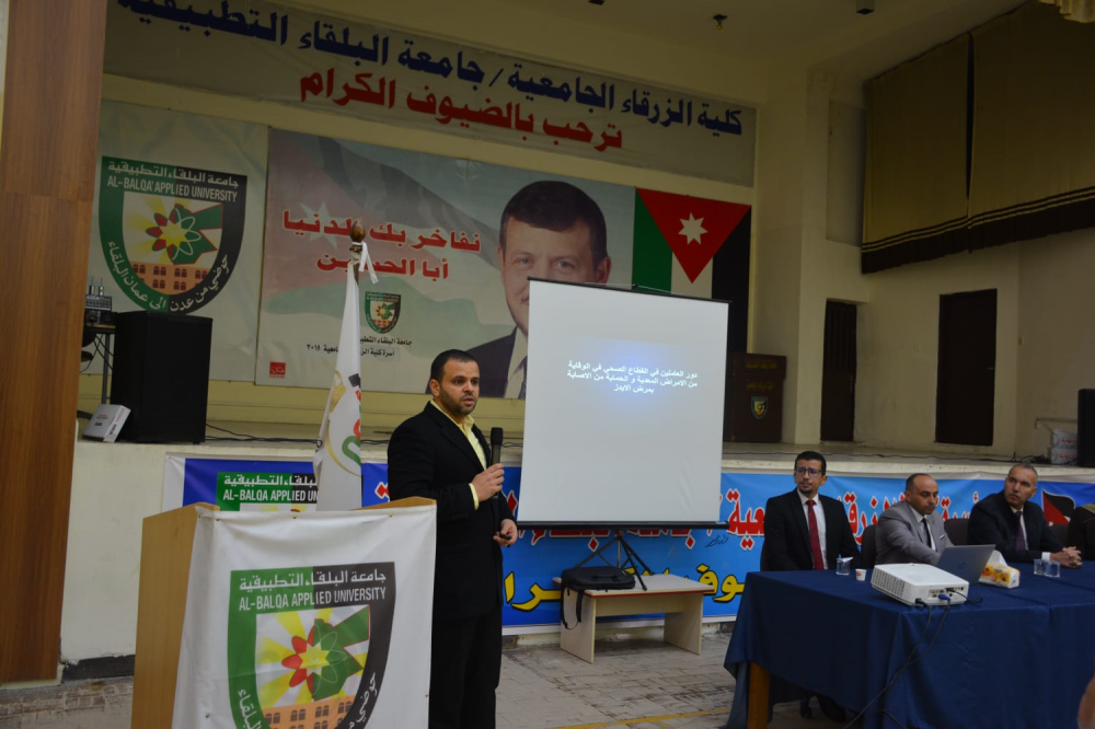 وخلال الافتتاح أشارالدكتور  عميد الكلية ان هذا النشاط ياتي انطلاقا من رسالتنا واستنادا من رؤيتنا وتحقيقا لخطتنا الاستراتيجية  في مجال التثقيف الصحي حول أهمية التوعية الصحية خاصة في المؤسسات التعليمية التي تضم اقسام صحية مثل قسم العلوم الطبية المساندة في هذه الكلية / كلية الزرقاء الجامعية جزء من مسؤولية العاملين الاكاديمين والاداريين في خدمة المجتمع بالاضافة لمسؤلياتهم تجاه التعليم والبحث العلمي. كما ان هناك ضرورة لتوجيه البحوث والدراسات لطلبة الكليات الطبية واعضاء هيئة التدريس نحو المشكلات الصحية لمساندة الجهود الرسمية في الحد من انتشار الامراض والاوبئة.