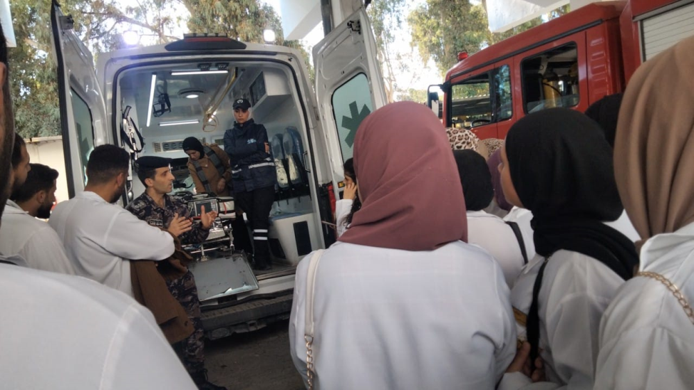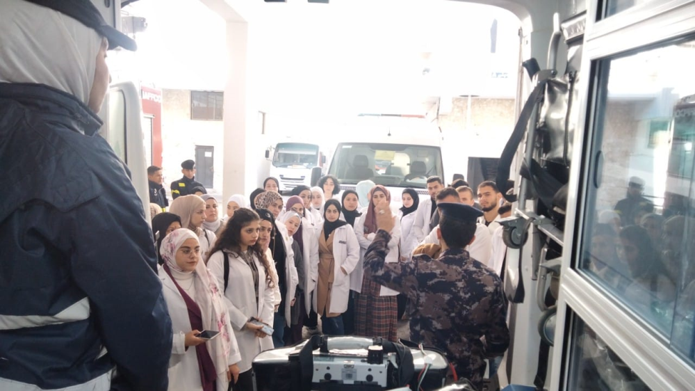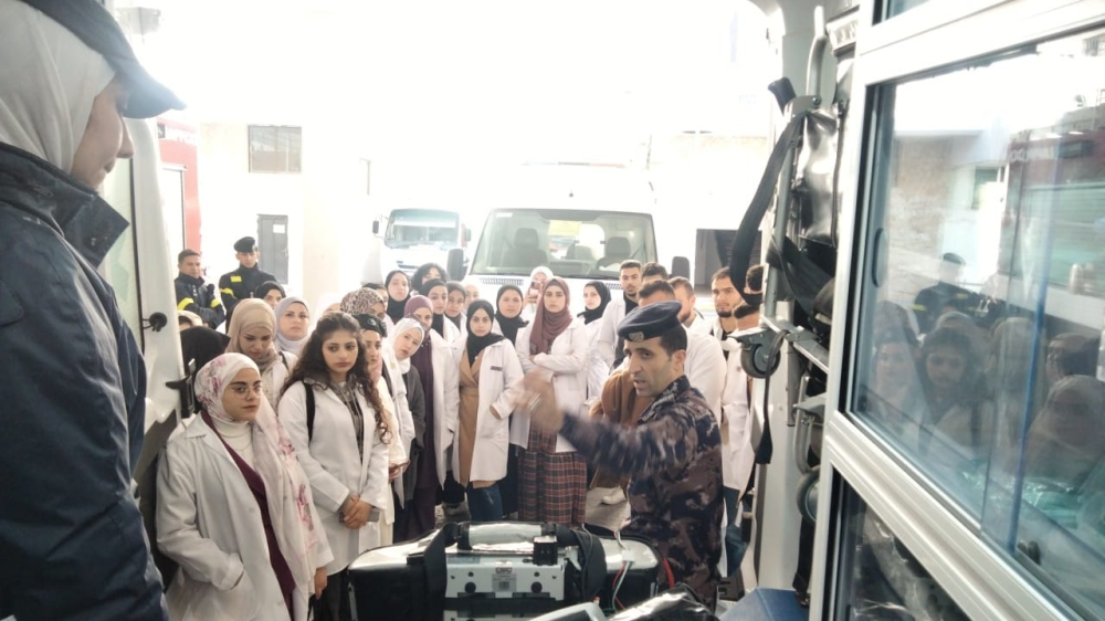 نظم قسم العلوم الصحية التطبيقية في كلية إربد الجامعية زيارة علمية لمديرية دفاع مدني اربد لتحقيق أهداف مساق الإسعافات الأولية لطلبة تخصص الصيدلة بمرافقة الدكتورة فلسطين حمدان مدرسة المساق.