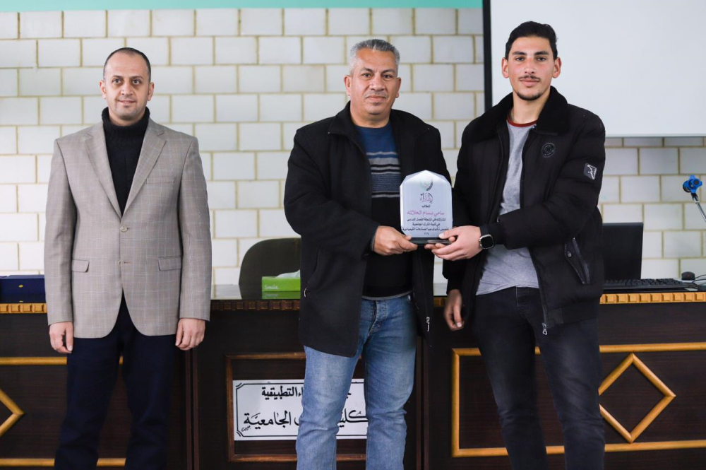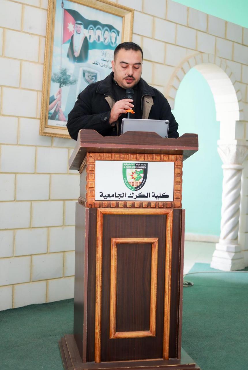 رعى عميد كلية الكرك الجامعية الدكتور هارون الطراونة الحفل الذي أقيم بمبادرة من عضو هيئة التدريس المهندسة مجد علي الصرايرة لبعض الطلبة المتفوقين والمبدعين في تخصص تكنولوجيا الصناعات الكيميائية ممن قدموا مشروعا بحثيا رياديا تضمن إنشاء محطة مصغرة لمعالجة المياه العادمة والطلبة الذين تميزوا بالعمل التطوعي والمبادرات الجماعية الهادفة الى خلق جو أكاديمي وطلابي يشكل حاضنة نموذجية للطلبة وأنشطتهم.