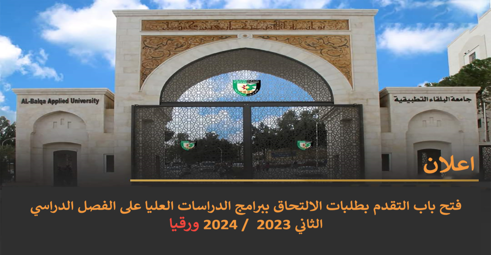 اعلان صادر عن كلية الدراسات العليا بخصوص فتح باب التقدم بطلبات الالتحاق ببرامج الدراسات العليا على الفصل الدراسي الثاني 2023 /2024 ورقيا