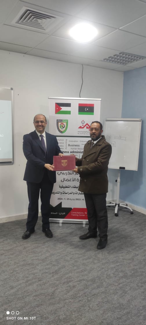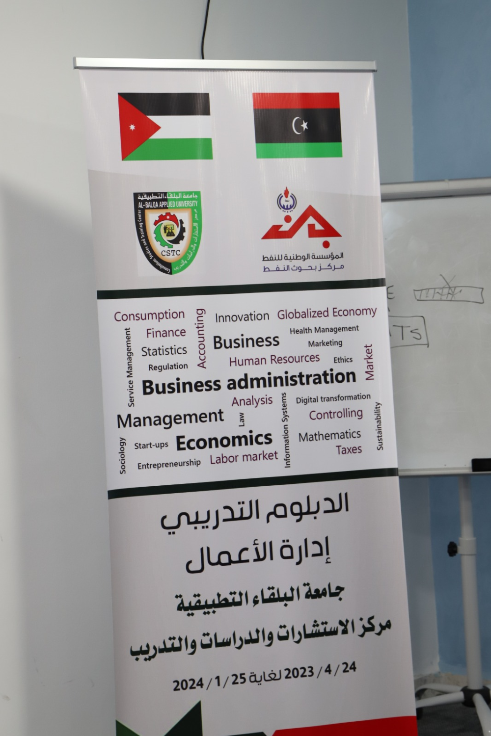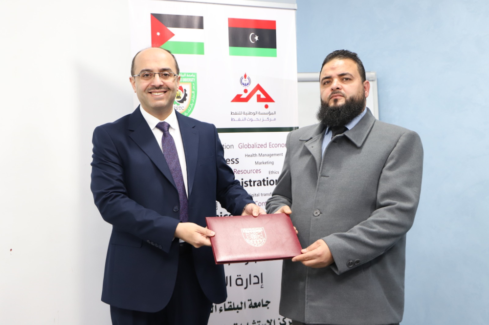 مندوباً عن رئيس جامعة البلقاء التطبيقية الأستاذ الدكتور أحمد فخري العجلوني رعى مساعد الرئيس الأستاذ الدكتور سعيد أبو رمان حفل تخريج المشاركين في البرنامج التدريبي ( دبلوم إدارة الأعمال ) من مركز بحوث النفط الليبي/ دولة ليبيا الشقيقة بحضور مدير مركز الإستشارات والدراسات والتدريب الدكتور عمر عربيات ومن كلية الأعمال المدرب للبرنامج التدريبي الدكتور محمد أبو رمان.