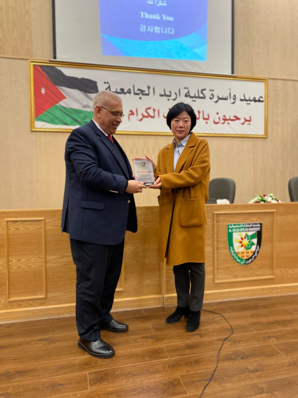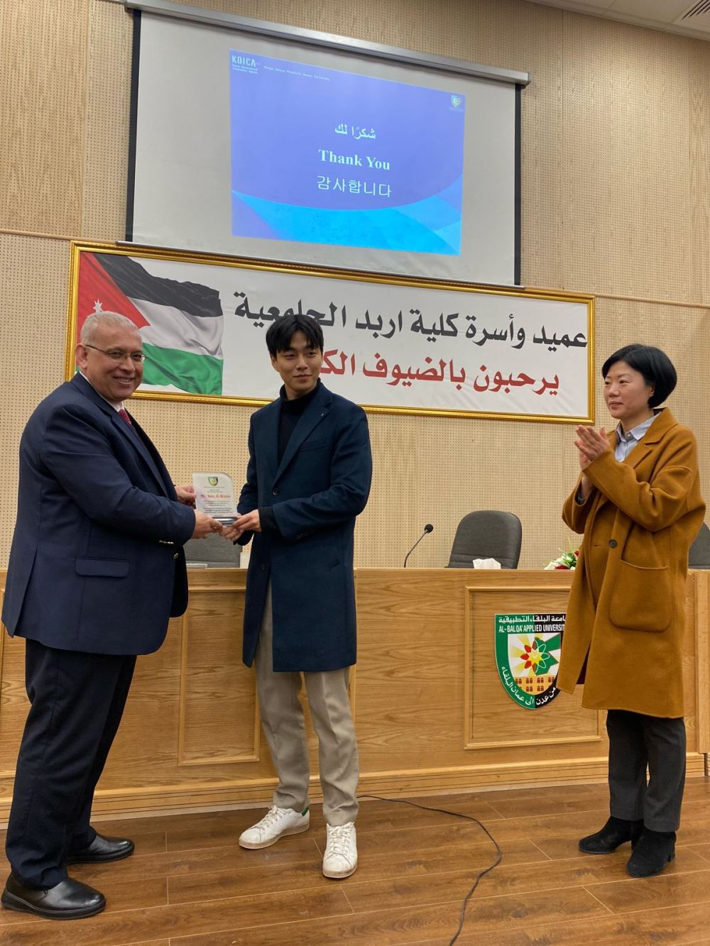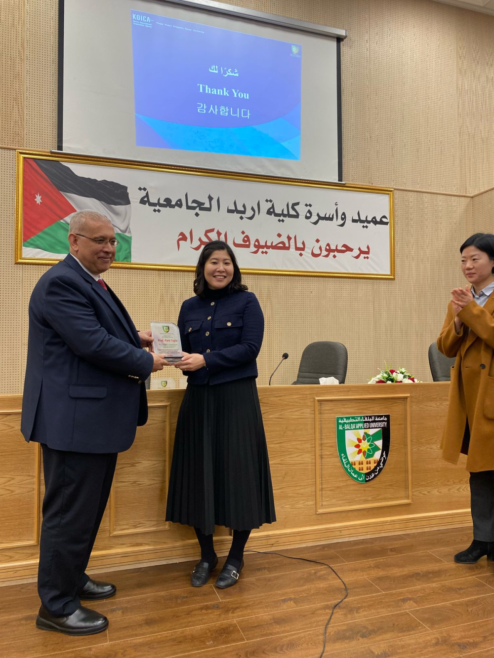 مندوباً عن رئيس جامعة البلقاء التطبيقية الأستاذ الدكتور أحمد فخري العجلوني رعى عميد كلية اربد الجامعية الأستاذ الدكتور يحيا سلامه خريسات  فعاليات تكريم الوفد الكوري الذي قام بإعطاء الدورات التدريبية:  التصميم الجرافيكي وتكنولوجيا الأزياء والحياكة وتكنولوجيا مختبرات الأسنان والتي نظمتها الوكالة الكورية للتعاون الدولي وبتنفيذ من الأساتذة من جامعة دونغ يوي الكورية لأعضاء الهيئة التدريسية والإدارية المختصين في المجالات السابقة في كليتي اربد والكرك الجامعيتين.