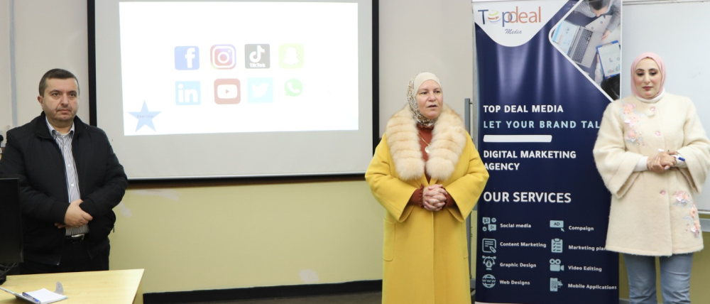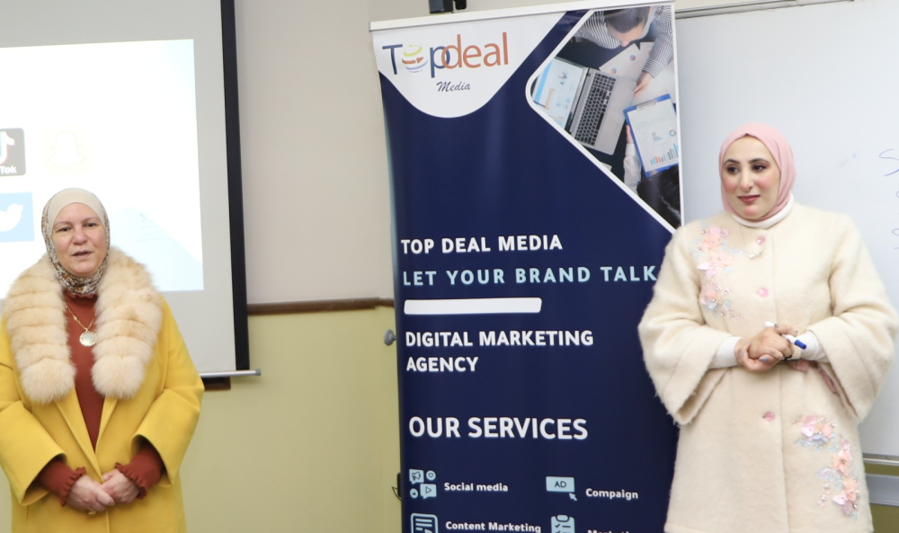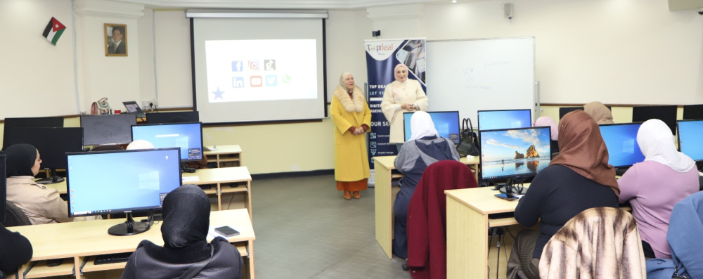 بتوجيهات من رئيس جامعة البلقاء التطبيقية الأستاذ الدكتور أحمد فخري العجلوني وتنفيذاً لرؤية ورسالة جامعة البلقاء التطبيقية في خدمة المجتمع المحلي ، عقد المركز الأردني الكوري للمعلومات وتكنولوجيا الإتصالات ورشة عمل تدريبية في السوشال ميديا والتسويق الإلكتروني لسيدات منتجات من المجتمع المحلي من محافظة البلقاء حاضرت فيها المدربة رنين المومني مديرة شركة Top Deal Media وبواقع 12 ساعة تدريبية.