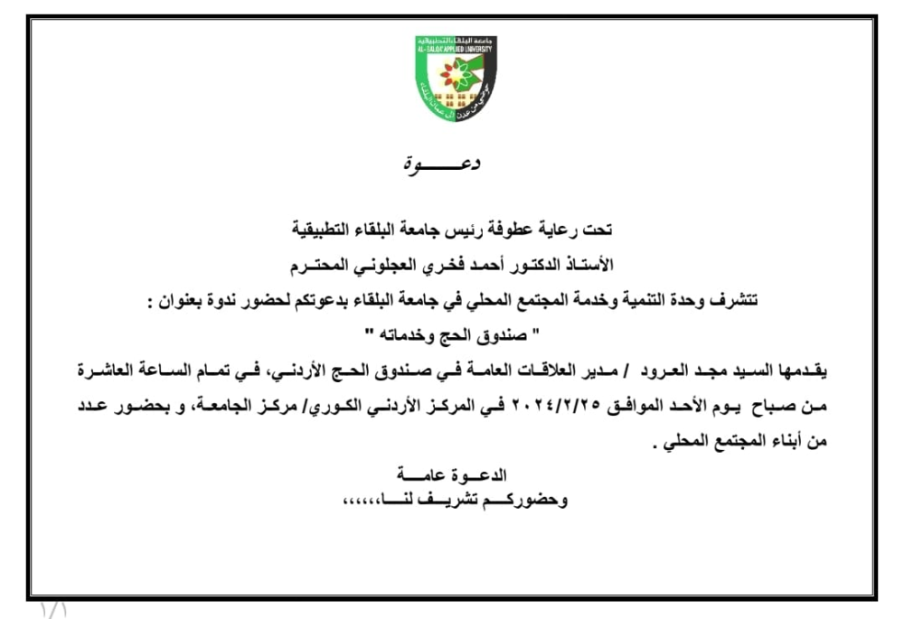 دعوة لحضور محاضرة حول صندوق الحج وخدماته