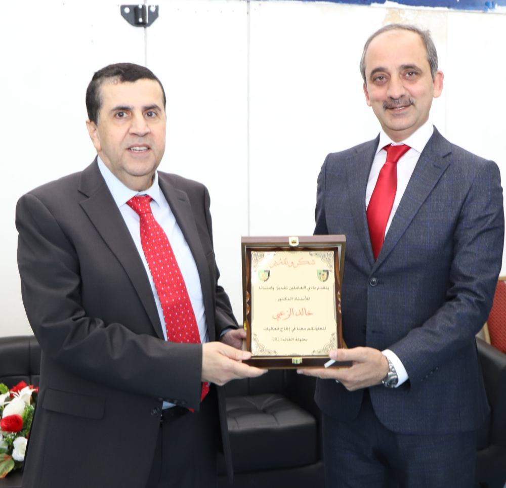 كما كرم الاستاذ الدكتور رئيس الجامعة عميد شؤون الطلبة للدور المتميز الذي قامت به العمادة بالتعاون مع نادي العاملين لانجاح بطولة القائد، ولجنة الطعون والتي تمثلت بالدكتور نضال الغفري والدكتور منور ابو هزيم والمهندس صالح ابو رمان
