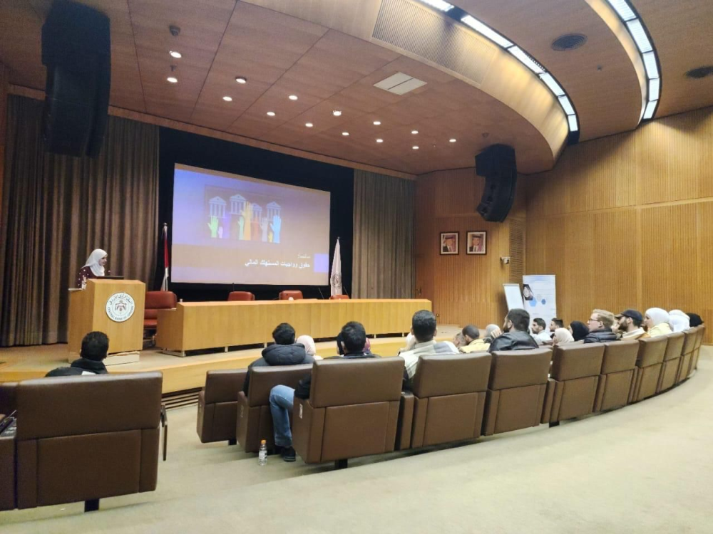 وكان في استقبالهم موظفي البنك المركزي السيد ابراهيم ابو درويش والسيد زياد البجالي ، السيده الاء حتوقاي والسيدة سحاب صمادي والسيدة حلا حياصات ، حيث قدموا شرح وافِ ومعلومات قيمة ومفصلة للطلبة عن دور البنك المركزي الأردني في إدارة السياسة النقدية والمحافظة على الاستقرار النقدي والمالي في المملكة وايضاً جلسة توعوية حول حماية المستهلك المالي ، كما تعرفوا على آلية اصدار النقد الأردني والعلامات الأمنية التي تتميز بها وحدة النقد الأردني والاطلاع على العملات النقدية الحديثة وكيفية التمييز بينها وبين العملات المزيفة والتعريف برموز الفئات النقدية الورقية .