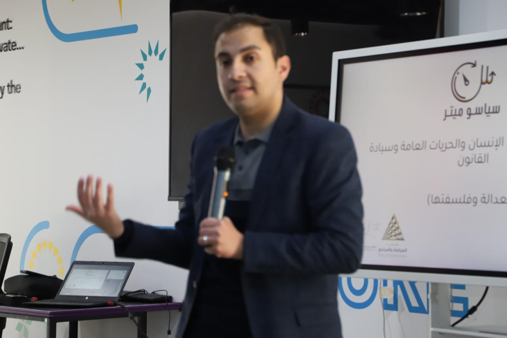 وتحدث في اليوم الاول للبرنامج والذي يستمر لمدة ثلاثة أيام مدير البرامج في معهد السياسة والمجتمع الاستاذ حسين الصرايره حيث بين الصرايره أن مشروع سياسو ميتر يستهل مرحلة بناء القدارت مع الشباب في الجامعات بمفاهيم حقوق الإنسان والحريات وسيادة القانون تحت عنوان "العدالة وفلسفتها" وذلك لما في هذه المفاهيم من أثر في تطوير مهارات المشاركين من تقييم وتحليل الاتجاهات السياسية من منظور حقوقي وعادل.
