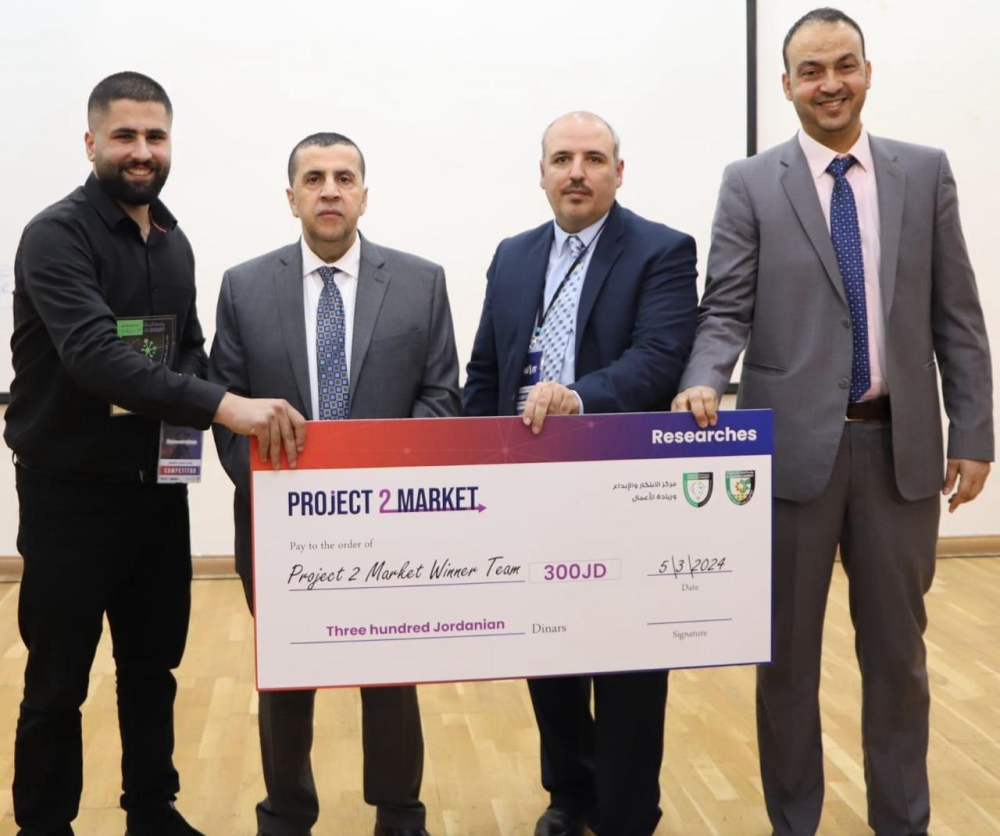 تتقدم عمادة كلية الدراسات العليا بالتهئنة والتبريك لطلبتها الاعزاء الذين حصلوا على جوائز في معرض مسابقة المشاريع الريادية الاولى Project2 Market )) وذلك انطلاقا من اهتمامها بالطلبة ودعم مسيرتهم التعليمية وافكارهم الريادية.