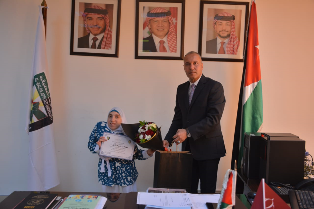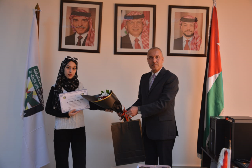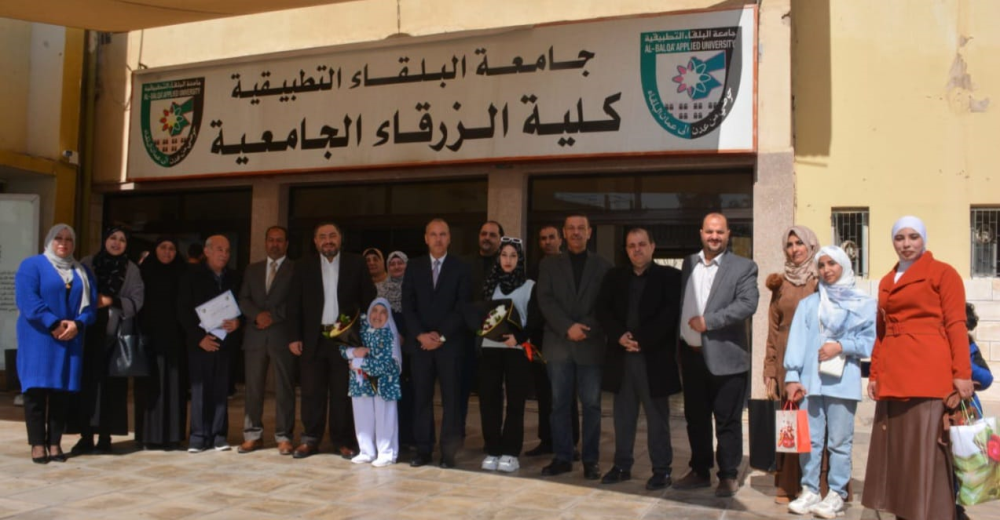 بتوجيهات من عطوفة الأستاذ الدكتور أحمد فخري العجلوني رئيس جامعة البلقاء التطبيقية كرم الأستاذ الدكتور زيد سليمان العدوان عميد كليه الزرقاء الجامعية الأوائل من كلية الزرقاء الجامعية في امتحان الشهادة الجامعية المتوسطة (الامتحان الشامل) - الدورة الشتوية لعام 2024وذلك بحضور نائب العميد ومساعدي العميد ورؤساء الأقسام الأكاديمية وأعضاء الهيئة التدريسية والإدارية وذوي الطلبة.