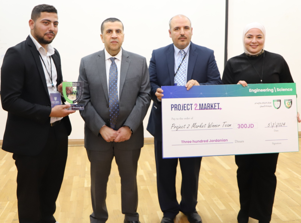 تحت رعاية رئيس جامعة البلقاء التطبيقية الاستاذ الدكتور احمد فخري العجلوني نظم مركز الابتكار والابداع وريادة الاعمال حفل ختام معرض مسابقة المشاريع الريادية الاولى Project 2 Market في نسختها الاولى بحضور الاساتذة نواب الرئيس وعميد شؤون الطلبة ومدير مركز الابداع والابتكار ومدراء الوحدات والدوائر وعدد من اعضاء الهيئة التدريسية والادارية وطلبة الجامعة