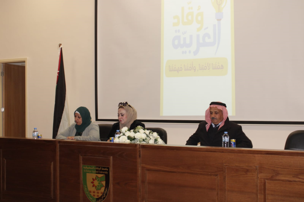 نيابة عن عميد كلية الأميرة عالية الجامعية الأستاذ الدكتور ناجي السعايدة رعى مساعد العميد للشؤون الطلابية وبالتعاون مع النادي الطلابي (وُقَّاد العَربيّة ) محاضرة بعنوان (لماذا ندرس العربية؟ )