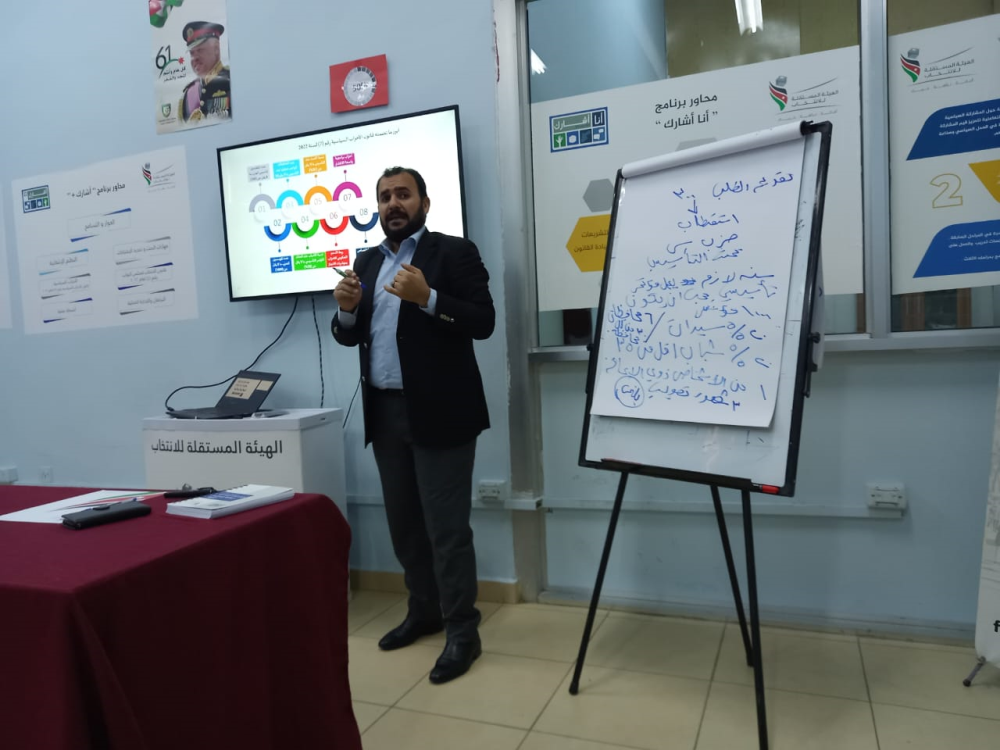 حيث استعرض المحامي طلال عليمات من الهيئة المستقلة للانتخاب أبرز التعديلات التي طرأت على قانون الانتخاب رقم (4) لسنة 2023 والذي جاء كثمرة من ثمرات التحديث السياسي الأخير، وبتوجيهات من جلالة الملك عبدالله الثاني ابن الحسين حفظه الله، وقدم عليمات شرحاً مفصلاً لمفهوم نظام التمثيل النسبي، والقائمة النسبية المغلقة للدائرة العامة والقائمة النسبية المفتوحة للدائرة المحلية، ومحور الأحزاب السياسية وما شمله من تعديلات واستعرض حد العتبة لكلا القائمتين المحلية والعامة، مؤكداً دور قانون الانتخاب في تعزيز مشاركة المرأة والشباب.