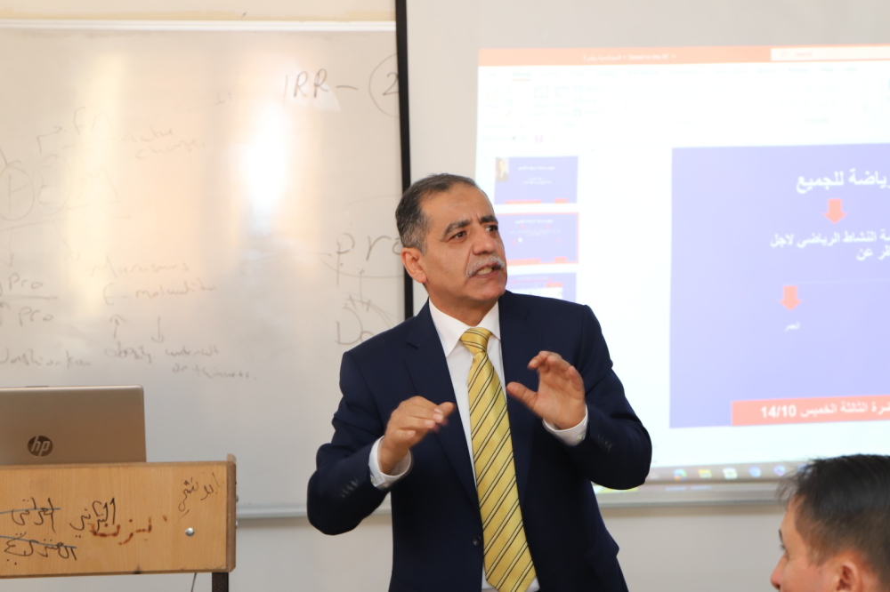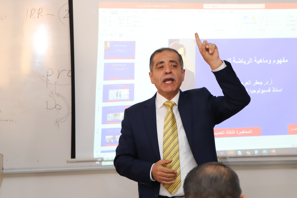 بدوره قدم الاستاذ الدكتور جعفر العرجان نبذه عن الرياضة وأهميتها للجميع فهي حق مكتسب لجميع الافراد ممارسة النشاط الرياضي ولأجل الصحة بغض النظر عن النوع الاجتماعي والعمر ، مشيرا الى علاقتها بالتحصيل الدراسي فهي تساهم بشكل ايجابي في تطوير القدرات العقلية والتحصيل الدراسي لدى الطلاب وتشجع على المذاكرة والاستذكار والاجتهاد وتعطي الثقة بالنفس وتجعل من الفرد قيادي ناجح بالإضافة إلى وقايته من الإصابة بالإمراض الناجمة عن قلة الحركة ، وهذا يؤكد على أهمية حث الطلاب وتشجيعهم على ممارسة الأنشطة البدنية والحركية وأدائها.