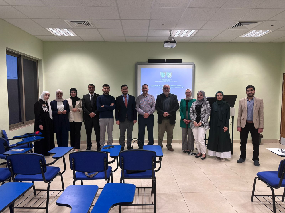 كما تقدم عميد كلية الطب الأستاذ الدكتور شادي حموري بتقديم جزيل الشكر لقسم الصحة العامة وطب المجتمع، ومنسق المساق، الدكتور طارق الشطناوي وكافة أعضاء الهيئة التدريسية والهيئة الإدارية الذين ساهموا في إنجاح هذه المناقشات من حيث الشكل والمضمون والتنظيم.