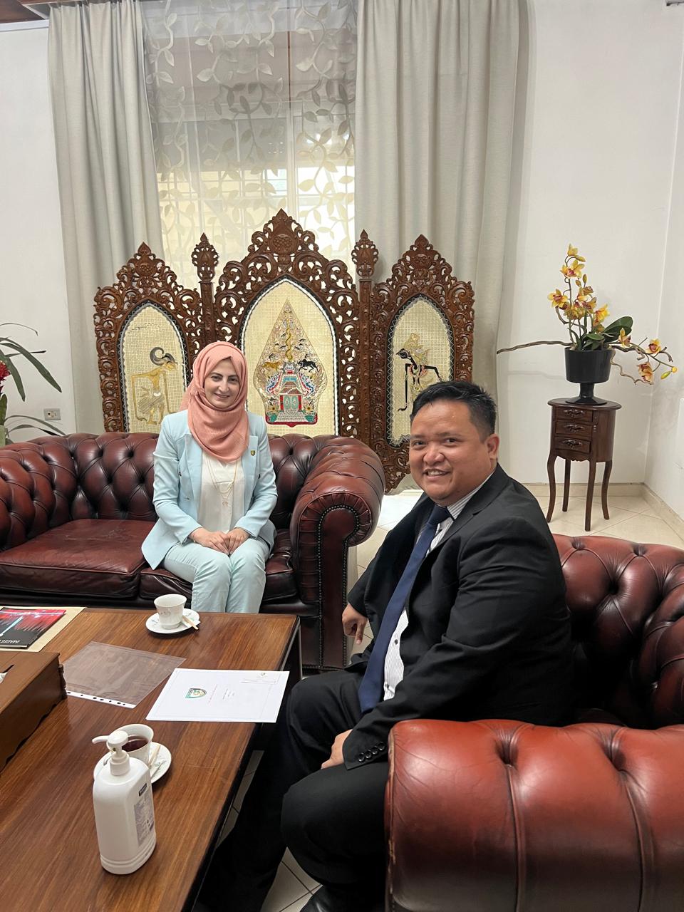 بتوجيهات من عطوفة رئيس جامعة البلقاء التطبيقية الأستاذ الدكتور أحمد فخري العجلوني بالتعاون مع السفارات والمؤسسات الدولية في مجال اللغات، زار اليوم الخميس الموافق 18/4/2024 وفد من مركز اللغات السفارة الأندونيسية في عمان. نقلت الدكتورة ختام الشريدة تحيات عطوفة رئيس الجامعة لسعادة السفير الأندونيسي آدي بادمو سارونو. هذا وناقشت الدكتورة الشريدة مع مساعد الملحق التجاري في السفارة السيد محمد منير سبل التعاون المشترك من خلال دورات لغة عربيه وانجليزيه لموظفي السفارة وكذلك استقطاب الطلبة الاندونيسيين لدراسة اللغة العربية في المركز. هذا وحضر اللقاء السيد سامر الوريكات مساعد الدائرة الادارية في المركز .