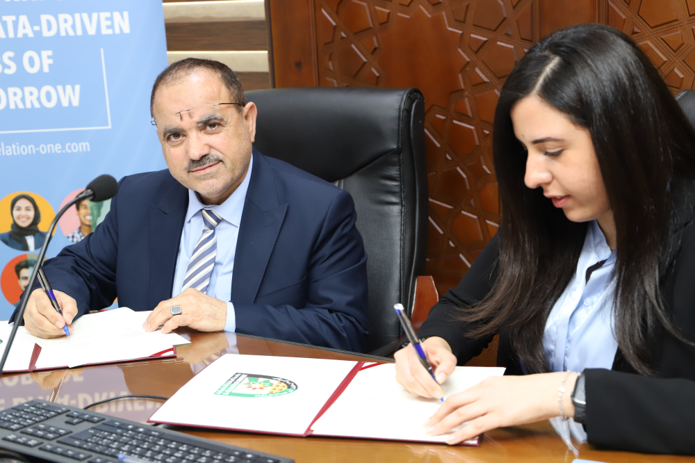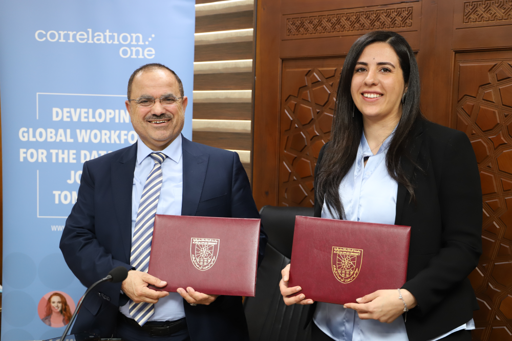 مندوباً عن رئيس جامعة البلقاء التطبيقية الأستاذ الدكتور أحمد فخري العجلوني وقع نائب الرئيس للشؤون الأكاديمية الأستاذ الدكتور موسى أبو عرابي مذكرة تفاهم مع شركة Correlation One لتعزيز فرص التعليم والتوظيف في مجال تحليل البيانات المتقدمة لطلبة الجامعة وخريجيها بحضور مديرة مكتب Correlation One في الأردن السيدة شهد عطية.