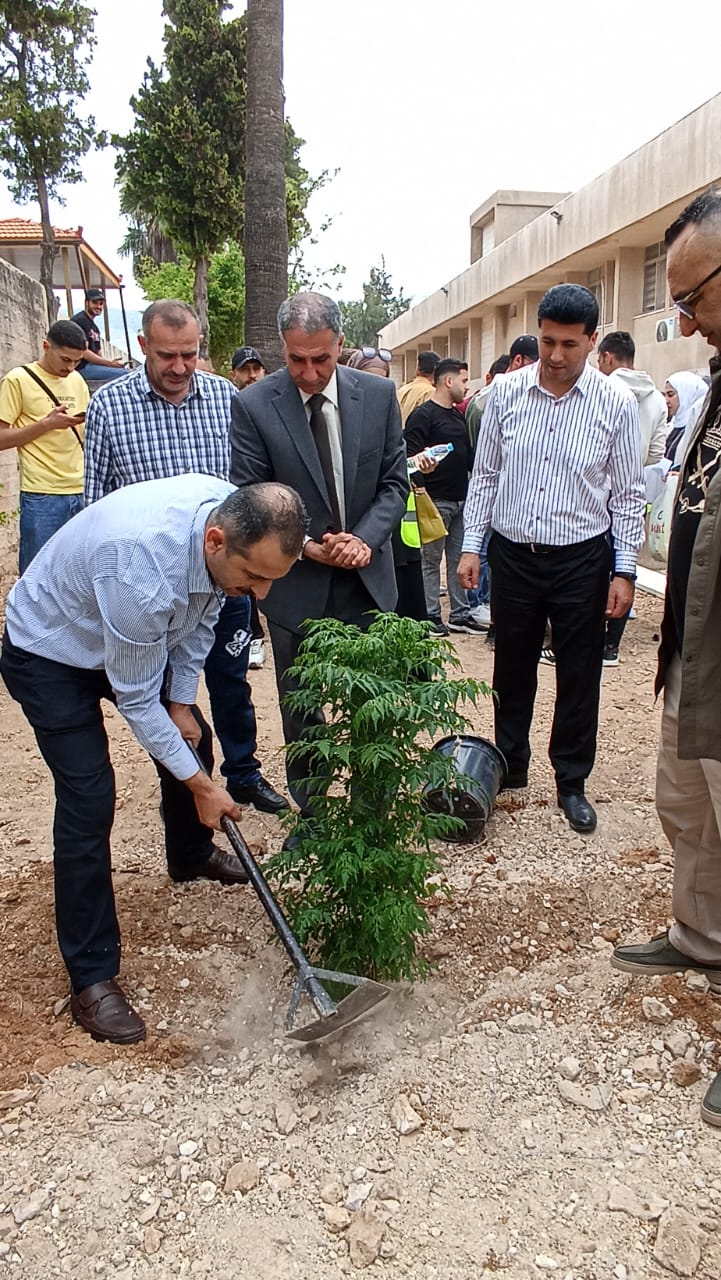 وأنطلق الجميع الى مختلف ارجاء الكلية ومرافقها لزراعة مجموعة من الأشجار الحرجية وعدد من أشجار الزيتون داخل حديقة الكلية شملت كافة حدائق الكلية.