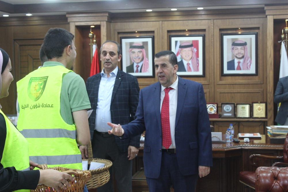 عمادة شؤون الطلبة تبادر بتهنئة العاملين في جامعة البلقاء التطبيقية باليوم العالمي للعمال من خلال فرقها الطلابية