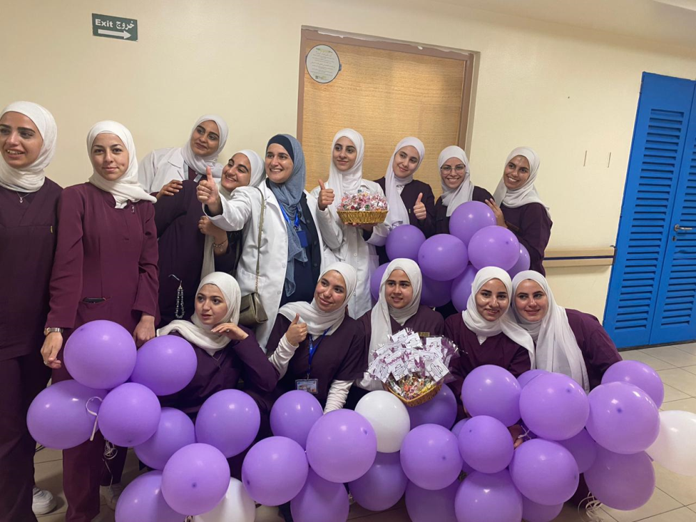 نظم قسم القبالة في كلية التمريض في جامعة البلقاء التطبيقية تخصص القبالة وحديثو الولادة من طالبات مادة رعاية الحوامل وبإشراف من عميد الكلية الدكتورة سارة الجعافرة ومدرسي المادة حفل تكريم لقابلات قسم النسائية في مستشفى البشير احتفالاً بيوم القبالة العالمي والذي يصادف 5/5 من كل عام .
