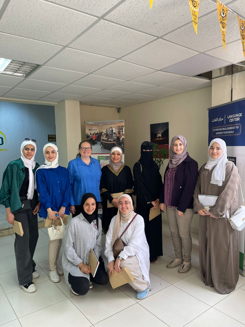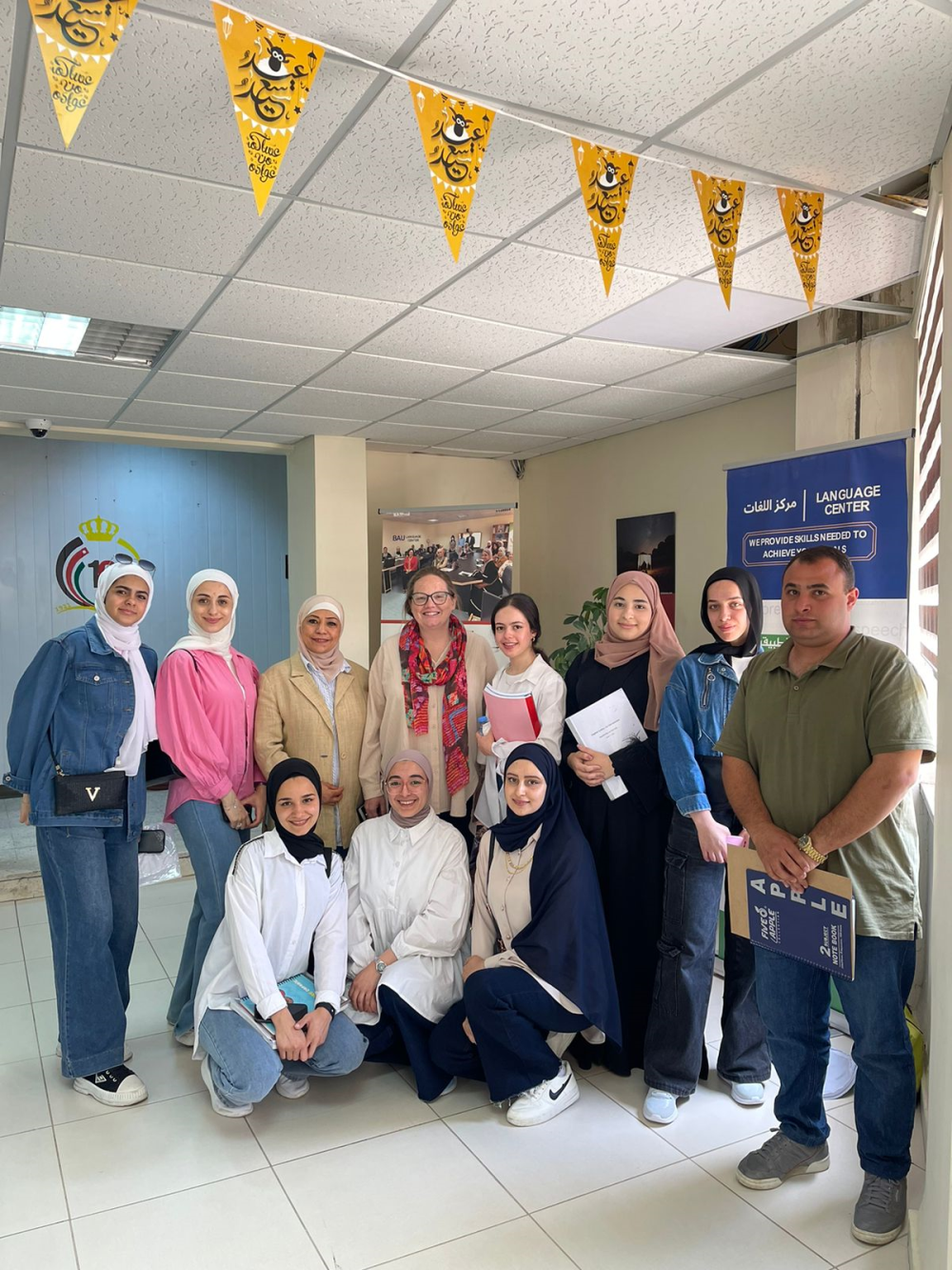 بهدف رفع الكفايات اللغوية للطلبة، عقد مركز اللغات في جامعة البلقاء التطبيقية، بالتعاون مع وحدة التعاون والعلاقات الدولية ومركز تكنولوجيا التعلم والتعليم في الجامعة، برنامج لغة انجليزية مجاني للطلبه (أسبوع المحادثة باللغة الإنجليزية) مع الدكتورة جينفير جرين، Fulbright Scholar، وذلك من 30/4/2024 ولغاية 6/5/202 في مركز اللغات/الشميساني وجامعة البلقاء التطبيقية /السلط. شارك عدد كبير من الطلبة من مختلف كليات الجامعة وحصلوا على شهادة حضور من مركز اللغات. الشكر الجزيل للدكتورة جينيفر ولكل من ساهم بإنجاح البرنامج.
