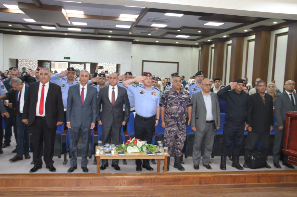 وتحدث عميد الكلية في كلمته قائلا: " يتزين الأردن بعقد يشكل لوحة من الجمال والإتقان والتنظيم طُرز بفكر هاشمي إتسم بالرقي والإبداع والأصاله إلى أن أصبح الأردن واحة جميلة في كل مناحي الحياة لا سيما ما يرتبط بهذه المناسبة الكريمة ألا وهي يوم المرور العالمي الذي يرتبط بخدمة البشرية الذي أصبح يشكل الأساس في سلوكنا الحياتي انطلاقًا من ارتباطه بكل فرد وبكل مؤسسة كي تستمر مسيرة الأمن والحفاظ على أرواح البشرية والممتلكات" .