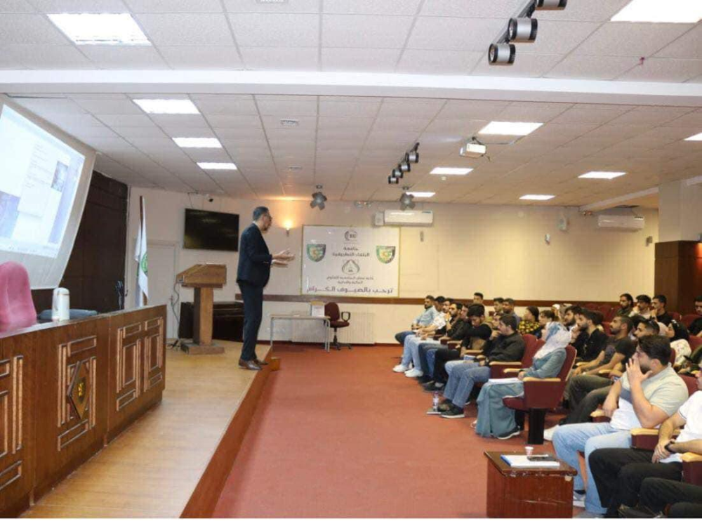 حيث اكد عميد الكلية على اهمية عقد مثل هذه الورشات والتي تساهم في رفع كفاءة الطلبة العلمية والعملية ،وتشجيعهم على التدريب والحصول على ورشات تدريبية تحاكي واقع المهنة للشركات المحلية في سوق العمل .