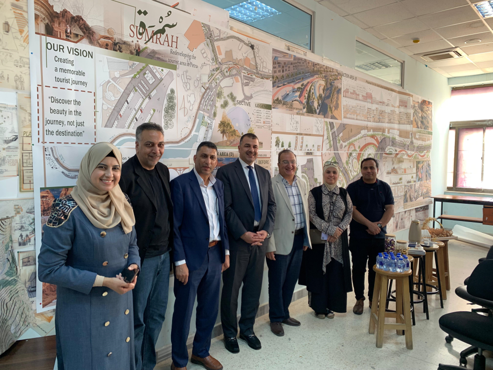زار وفداً من سلطة إقليم البتراء ممثلاً بمفوض البنية التحتية والإستثمار المهندس حمزة العلياني والمهندس يحيى الحسنات والمهندس راشد النوافلة إلى قسم العمارة في كلية الهندسة حيث تم عرض مشاريع تطوير شارع الفنادق في البتراء وذلك بناءً على الإتفاقية الجاري توقيعها بين جامعة البلقاء التطبيقية وسلطة اقليم العقبة لتقديم الدراسات اللازمة للسلطة فيما يختص بالتصميم والتخطيط الحضري لمنطقة البتراء.