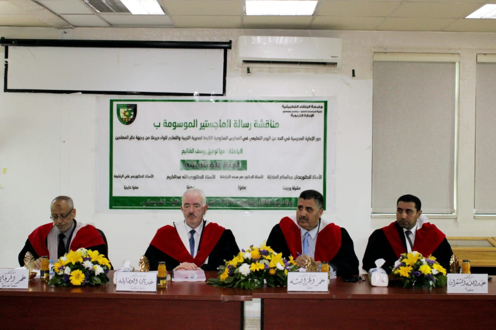 مناقشة رسالة ماجستير للطالبة مها توفيق غنانيم في كلية الأميرة عالية الجامعية